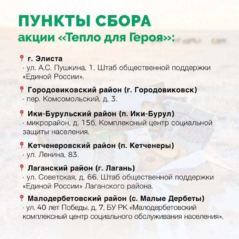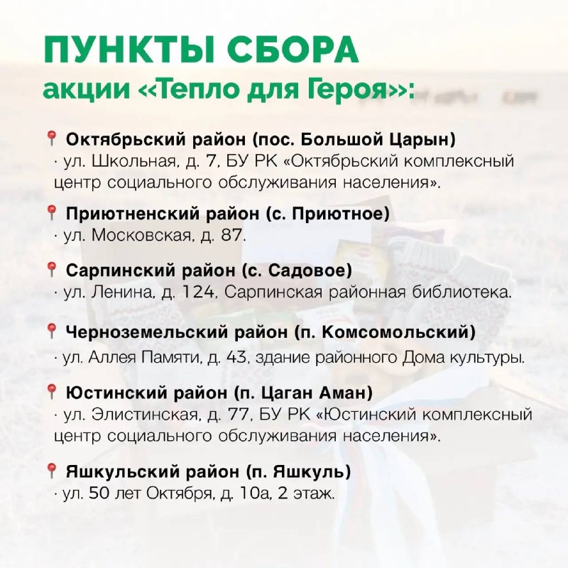 🪖 С 2 по 23 февраля в Калмыкии проходит благотворительная акция «Тепло для Героя»!