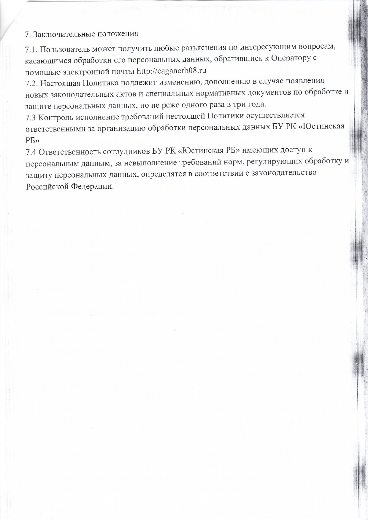 Политика в отношении обработки персональных данных бюджетного учреждения Республики Калмыкия "Юстинская районная больница имени Колдаева Бориса Эрдниевича"